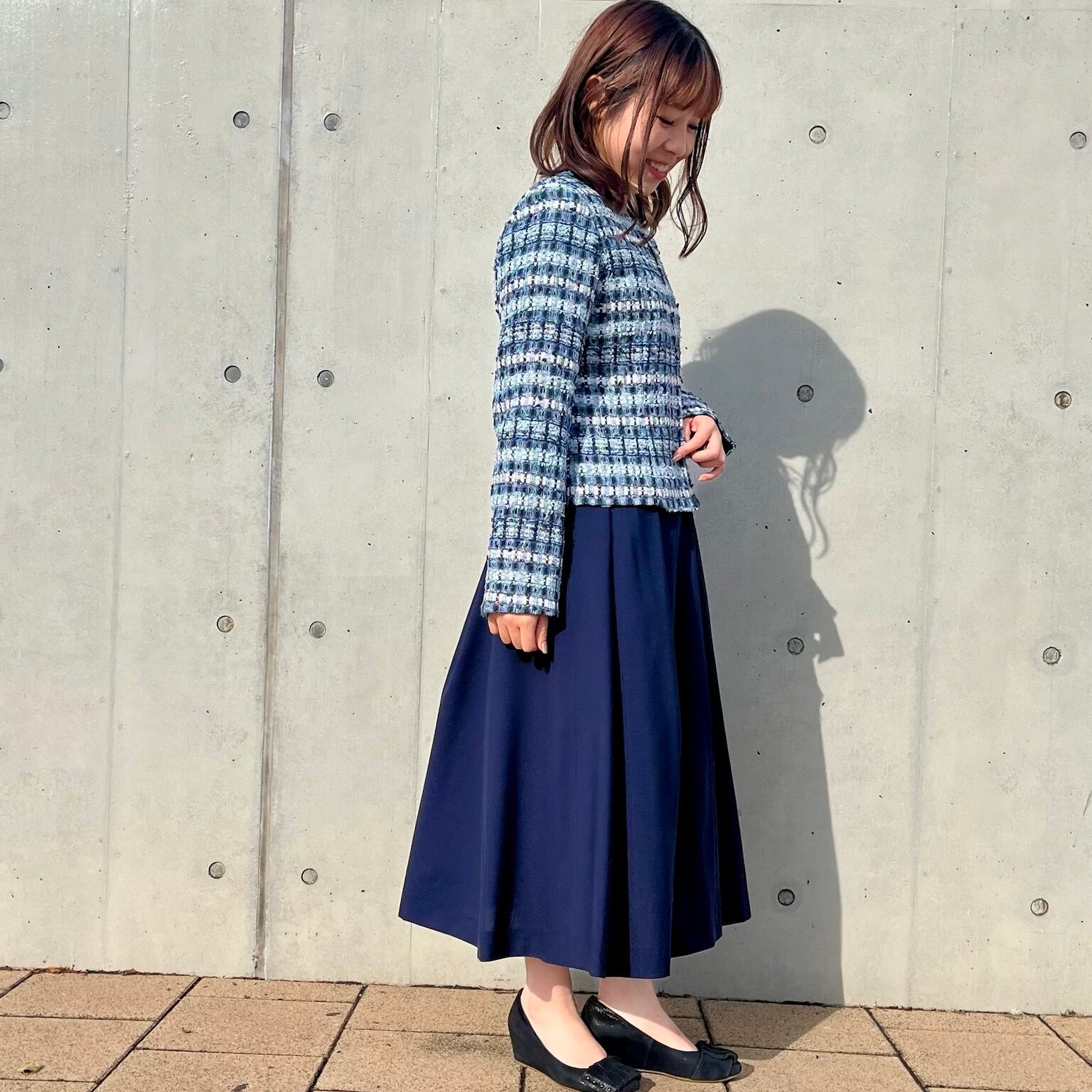 ウエストシェイプした上品なシルエットでスタイルアップ