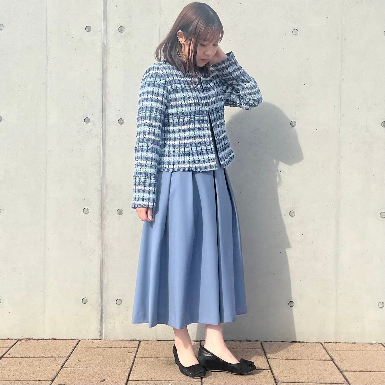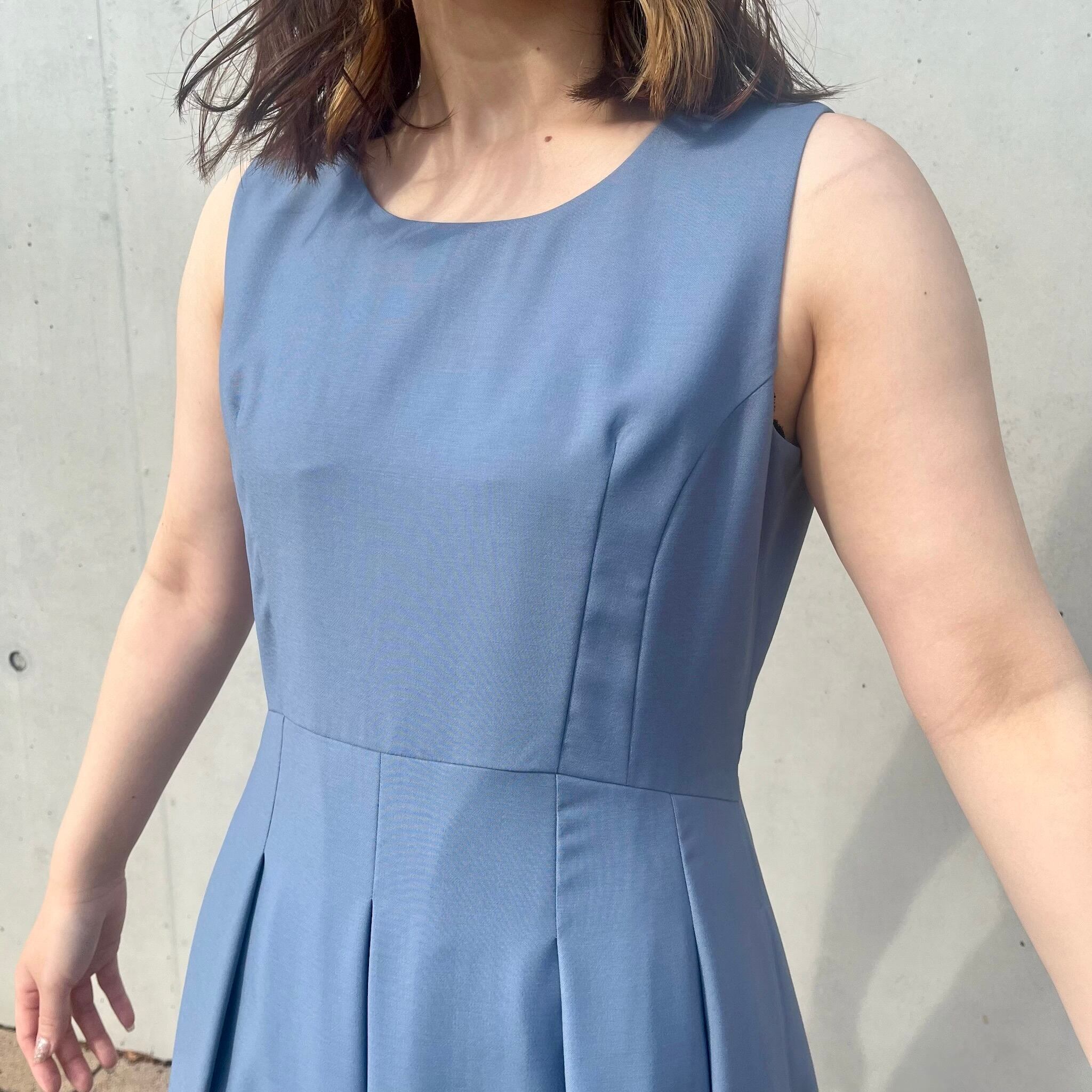 身頃の切り替えとスカートのボックスタックで上品なフィット&フレアシルエット