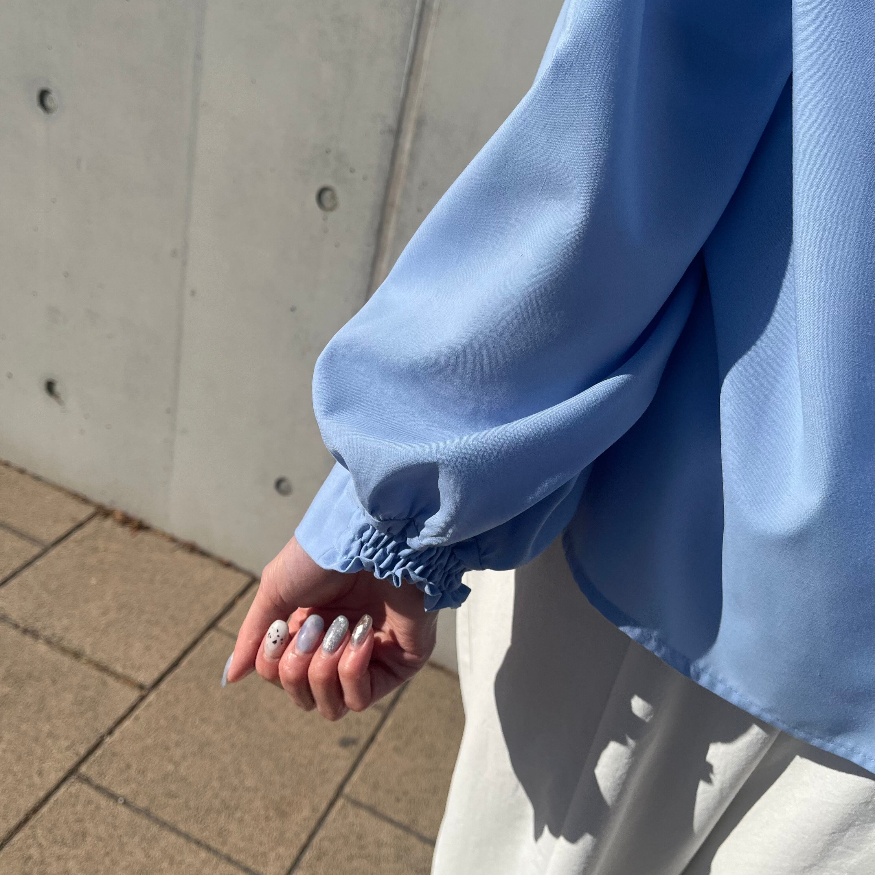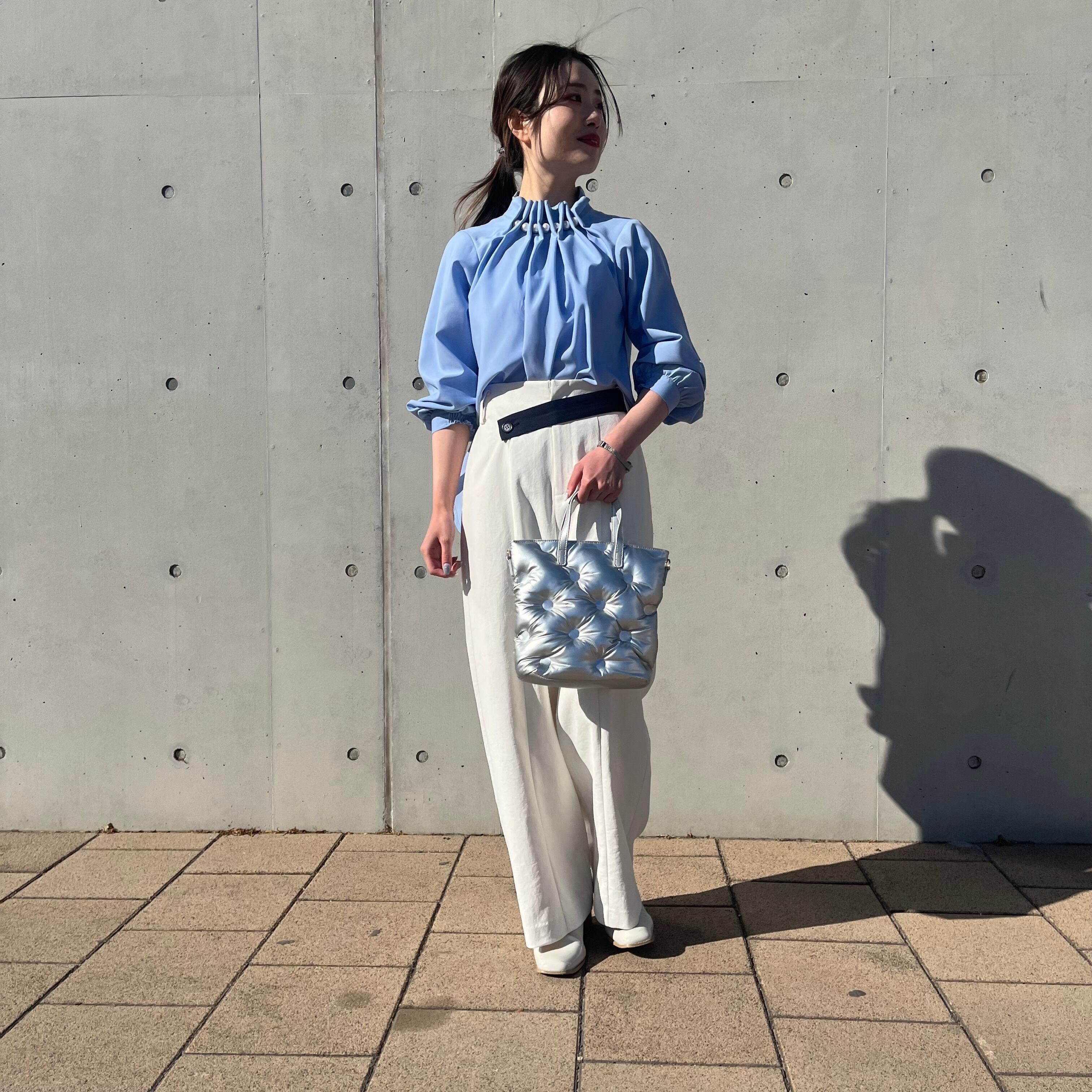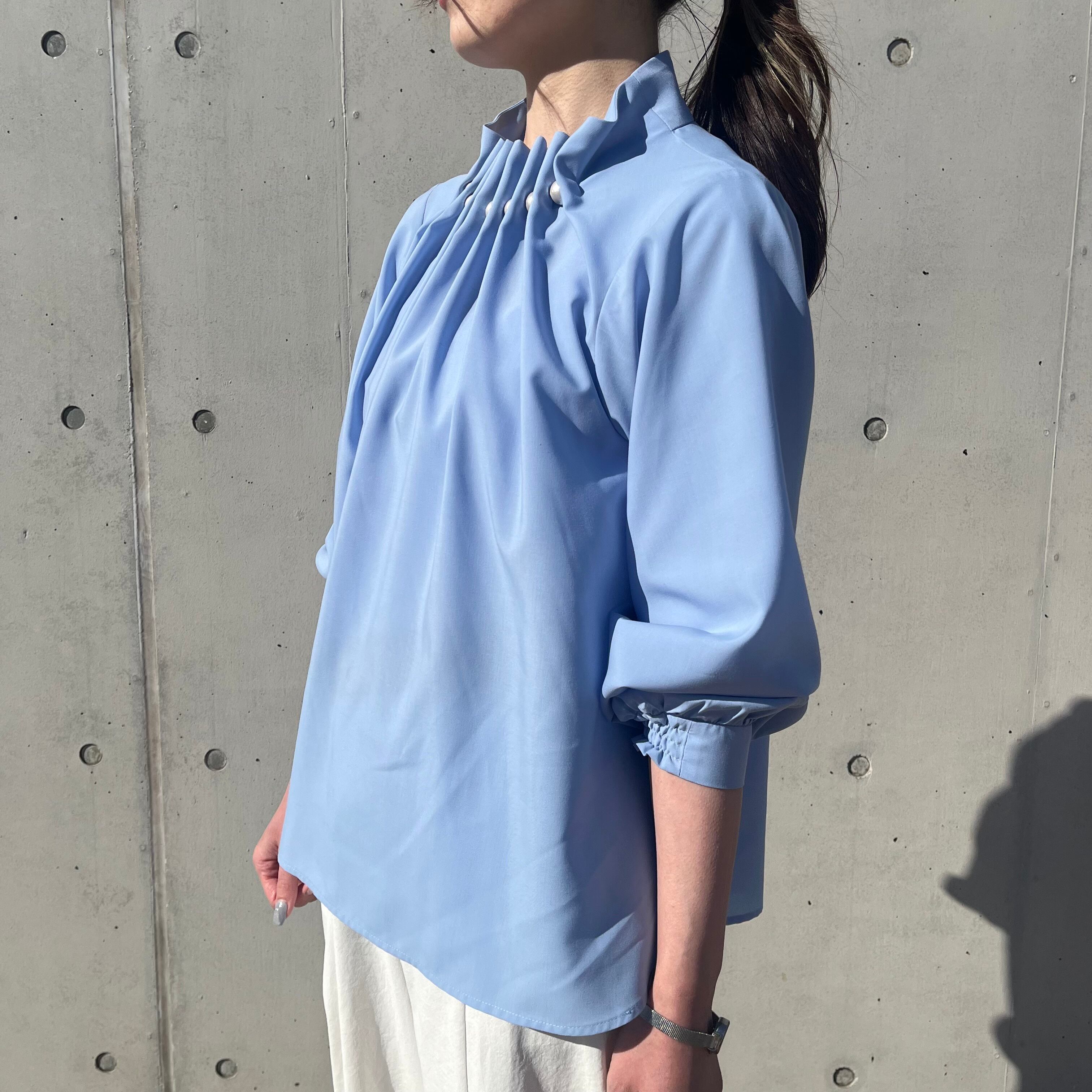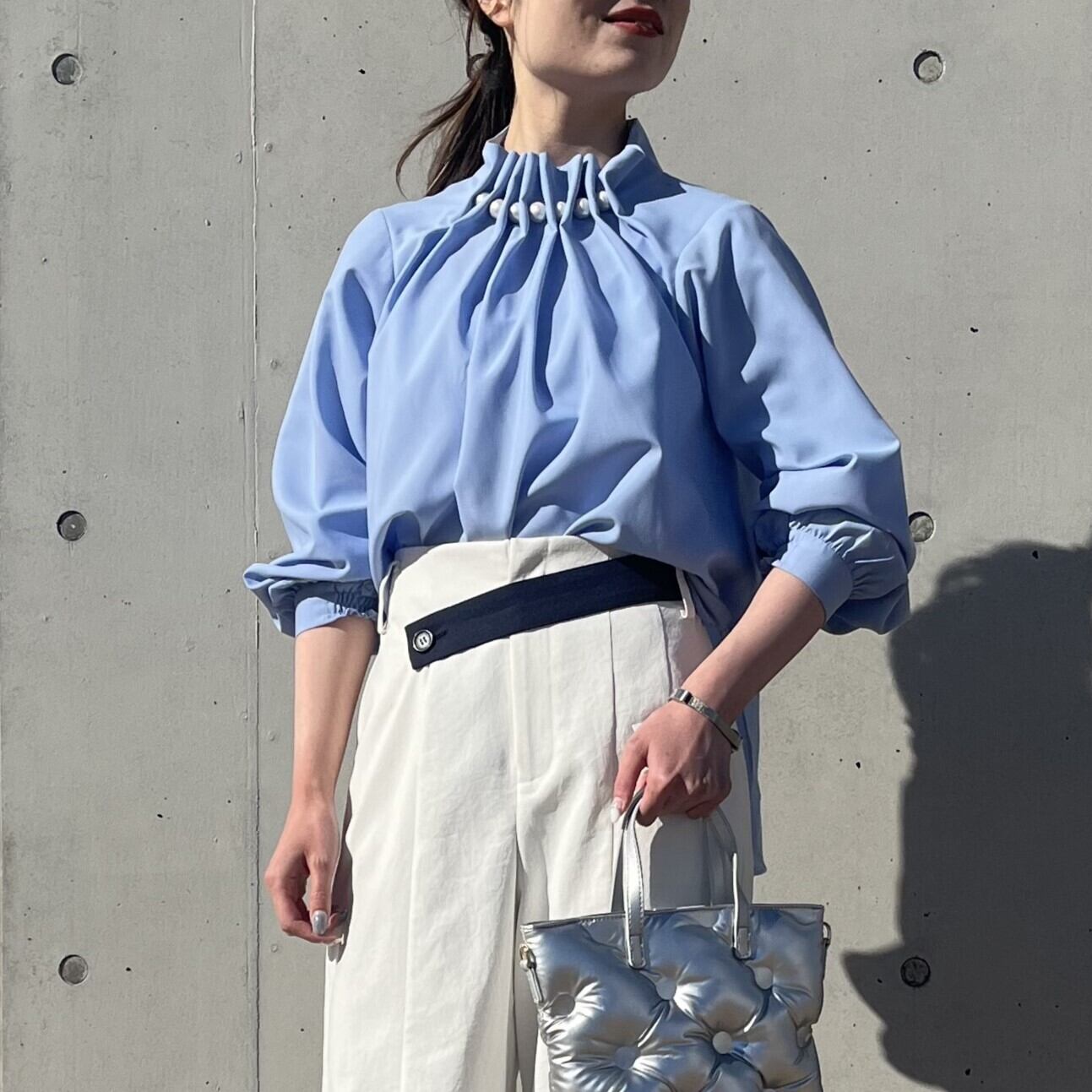 大ぶりのコットンパールとタックが華やかなプルオーバーブラウス